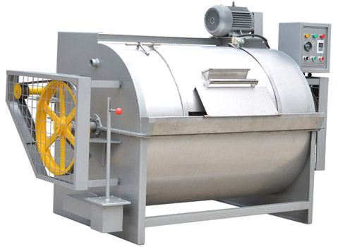 水洗機(jī)是滾筒型,內(nèi)、外殼采用優(yōu)質(zhì)不銹鋼制作而成,平整光滑、耐腐蝕、不損傷織物。水洗機(jī)由內(nèi)筒、外筒、電機(jī)、支撐總成、傳動(dòng)總成、電器總成組成。結(jié)構(gòu)合理、安裝使用方便。水洗機(jī)工作原理:由頂置電機(jī)、三角膠帶、帶動(dòng)傳動(dòng)總成,使內(nèi)筒作正反轉(zhuǎn)運(yùn)轉(zhuǎn),通過(guò)織物與織物、織物與內(nèi)筒壁的相互摩擦,達(dá)到洗滌效果。機(jī)器內(nèi)置過(guò)熱、過(guò)載裝置、定時(shí)裝置、正反轉(zhuǎn)控制裝置。水洗機(jī)外筒門(mén)設(shè)有安全裝置,若運(yùn)行中門(mén)被打開(kāi),機(jī)器立即停止運(yùn)轉(zhuǎn),確保機(jī)器、操作人員的安全。按容量大小分為:15kg、30kg、50kg、70kg、100kg、150kg、200kg等系列。該容量為干衣物的重量。